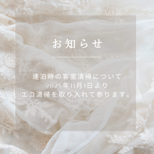 当ホテルでは、2025年11月1日より、SDGsおよび衛生保持への取り組みの一環として、環境に配慮した客室清掃の運用を開始いたしました。